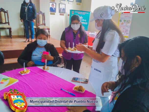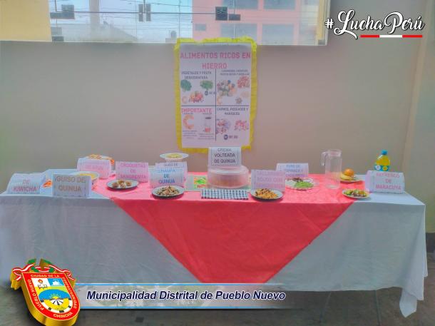 En la citada actividad participaron Agentes Comunitarios de Pueblo Nuevo, Chincha y la ciudad de Pisco. Como parte de la bienvenida, las agentes comunitarias del distrito hicieron muestra de platos y dulces nutritivos a base de quinua, kiwicha sangrecita entre otros cuáles contienen hierro y ayuda en la hemoglobina de los menores. Cabe indicar, que esta demostración de alimentos nutrutivos forma parte del trabajo de sensibilización en las visitas domiciliarias efectuadas a las madres de menores de 1 año para su alimentación adecuada y evitar la anemia.
