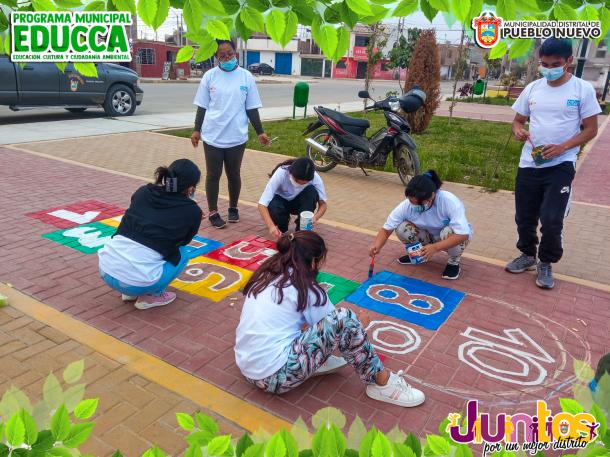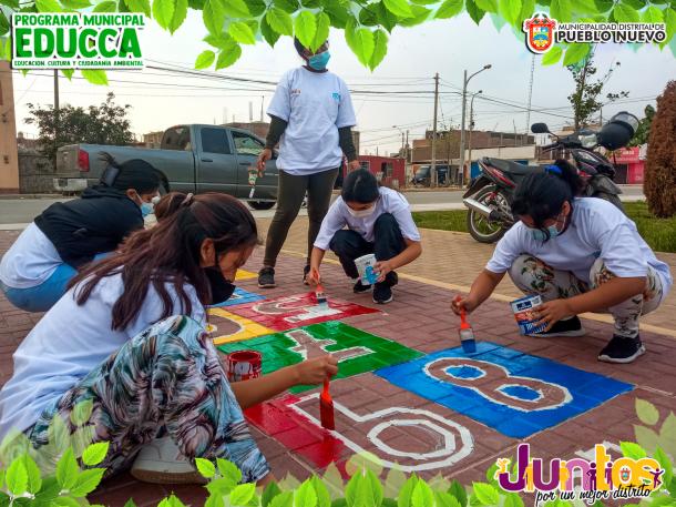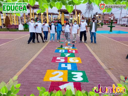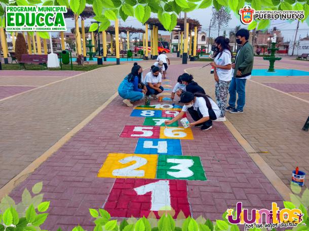 Esta acción de conciencia ambiental se realizó con el pintado de adoquines y/o señalización para el juego tradicional del mundo y juegos relacionados para una distracción sana en los vecinos y visitantes.