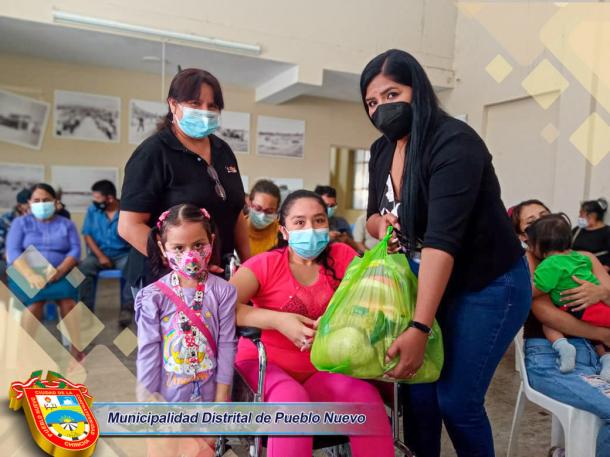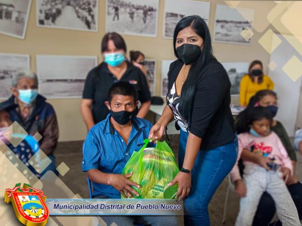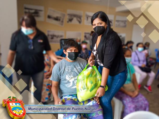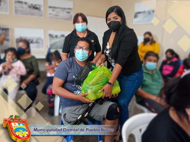 Con el fiel compromiso de brindar ayuda a quienes más lo necesitan, la Municipalidad Distrital de Pueblo Nuevo entregó de Alimentos de Primera Necesidad a los integrantes de la Familia OMAPED (Oficina Municipal de Atención a las Personas con Discapacidad). Esta entrega corresponde a un tercer grupo de beneficiarios entre ellos niños, jóvenes y adultos que presentan alguna discapacidad. Cabe precisar, que esta actividad se viene desarrollando cada fin de mes, el mismo que va continuar hasta completar la totalidad de integrantes de OMAPED.