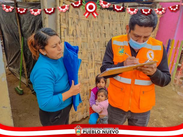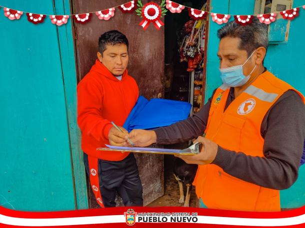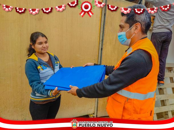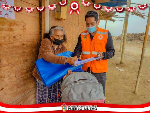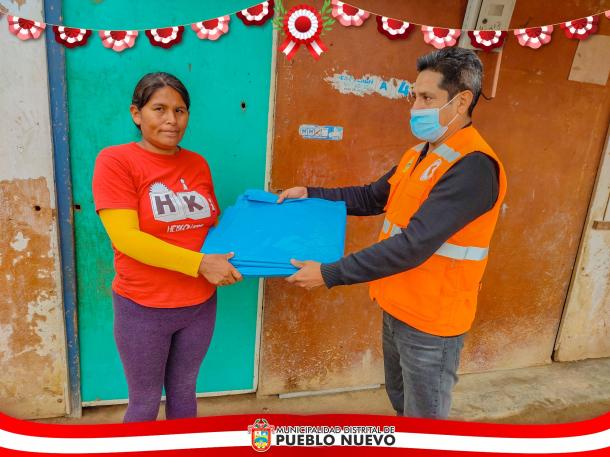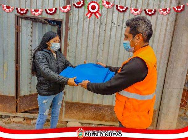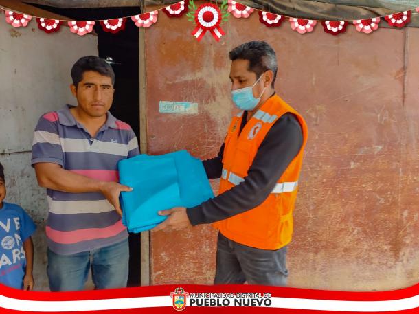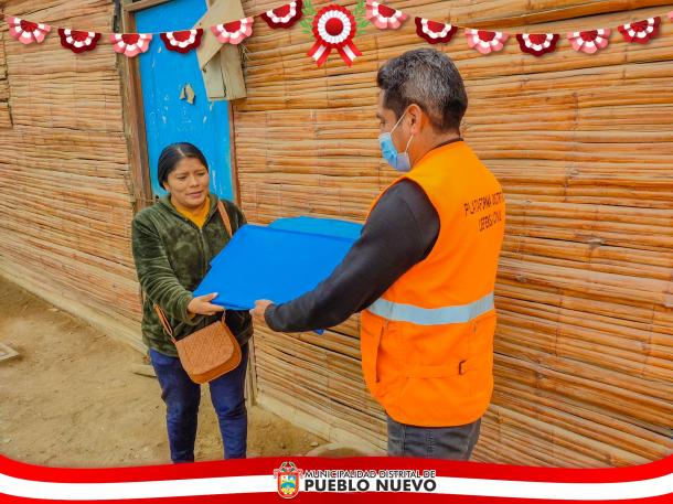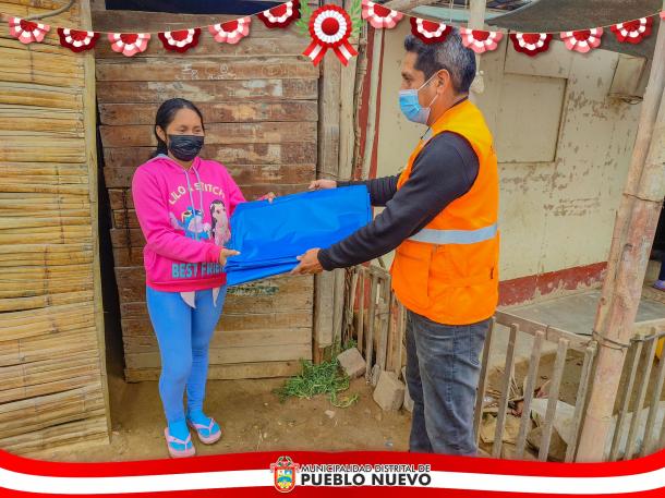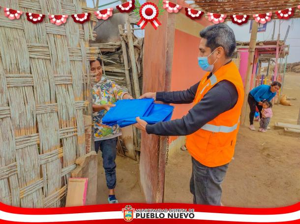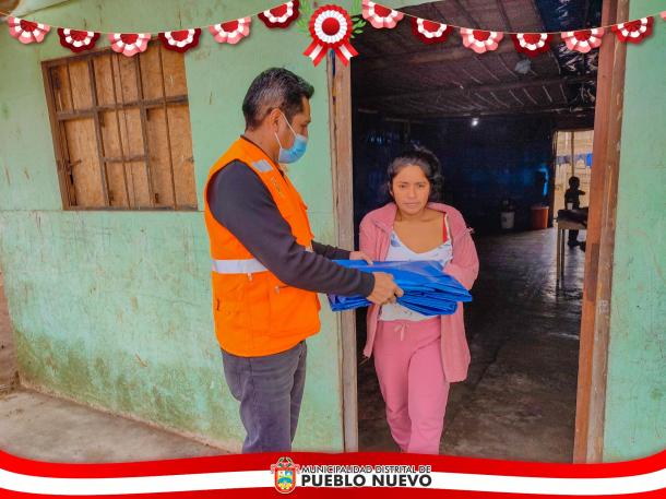 Familias de escasos recursos económicos del Asentamiento Humano 28 de setiembre del distrito de Pueblo Nuevo, recibieron plásticos para proteger sus viviendas precarias que son vulnerables a las lluvias y la inclemencia del frio.