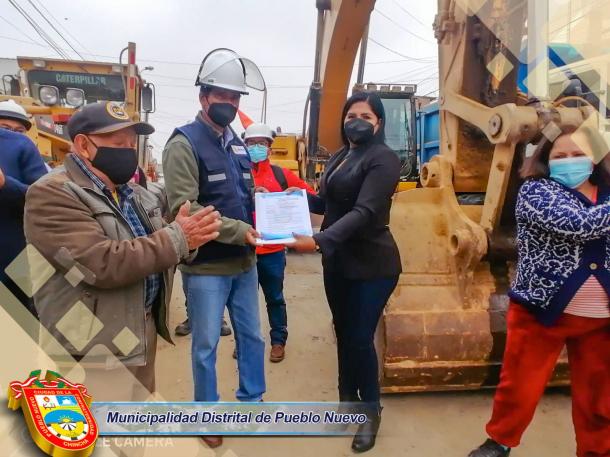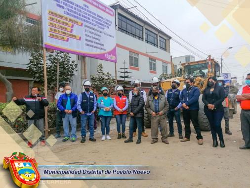 La Municipalidad Distrital de Pueblo Nuevo, entregó el terreno para la ejecución de la obra de mejoramiento del servicio de movilidad urbana a través de pistas y veredas en el Jr. 23 de Mayo, con una inversión de más de 2 millones 700 mil soles, beneficiando a todas las familias de la mencionada calle y del cercado del distrito.