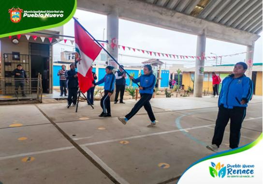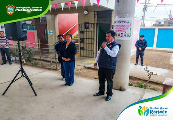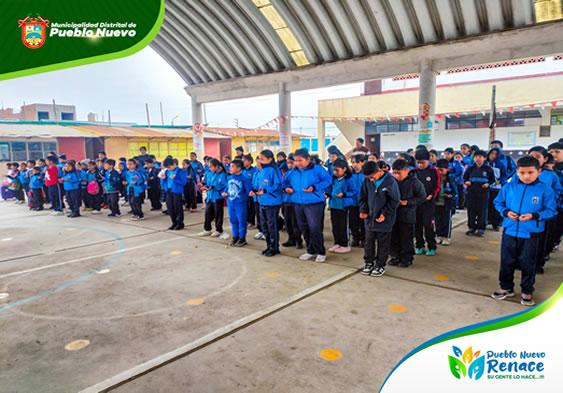 El alcalde de Pueblo Nuevo, Ing. William Sánchez Cahuana, participó en la ceremonia de inicio de semana escolar en la institución educativa 22480 José Carlos Mariátegui.
