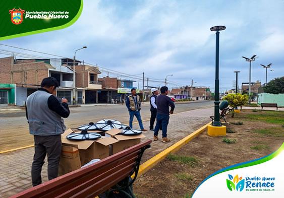 Además, el alcalde supervisó la colocación de nuevas luminarias en los postes del parque. Estas nuevas luces, instaladas a una mayor altura, reemplazarán las antiguas que estaban al alcance de manos indebidas. Los trabajos avanzan rápidamente y pronto el parque tendrá un renovado y brillante panorama.
