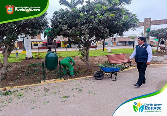 El Ing. William Sanchez Cahuana, alcalde de pueblo nuevo realizó una importanye inspeccion de los trabajos en el Parque La Revolucón. En su visita, verifico la poda de arboles y el proximo sembrado de césped en las areas deterioradas por el paso del tiempo