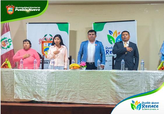 En el salón de actos de la Municipalidad de Pueblo Nuevo, se llevó a cabo una conferencia de prensa para conmemorar el 55 aniversario del mercado local. El evento contó con la presencia del alcalde del distrito, Ing. William Sánchez Cahuana, el Econ. César Gálvez Salvatierra, Ariana Fajardo y la señora Consuelo Raymundo, quienes compartieron detalles sobre las actividades programadas para esta celebración.