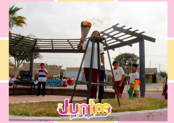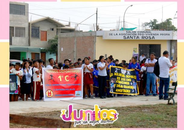 En la Plaza de Armas de la Asociación Pro Vivienda Santa Rosa se realizó la inauguración de los Juegos Deportivos internos de la Institución Educativa Horacio Zevallos Games.